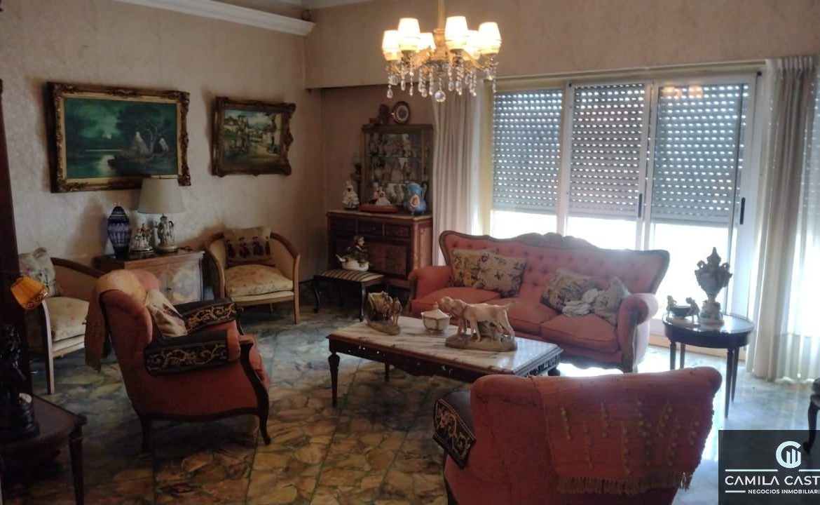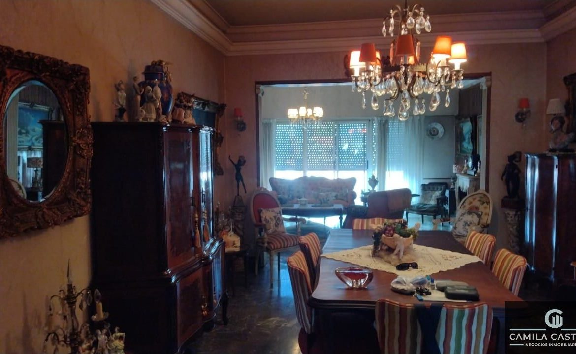 Departamento en planta alta, de 200 m2 aprox., que cuenta con hall de ingreso, comedor, amplio living, cocina, dos dormitorios con placard, balcón que abarca todo el frente, baño completo, tercer dormitorio, galería cerrada, lavadero, patio con parrilla.