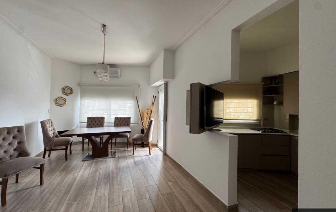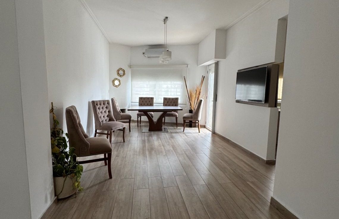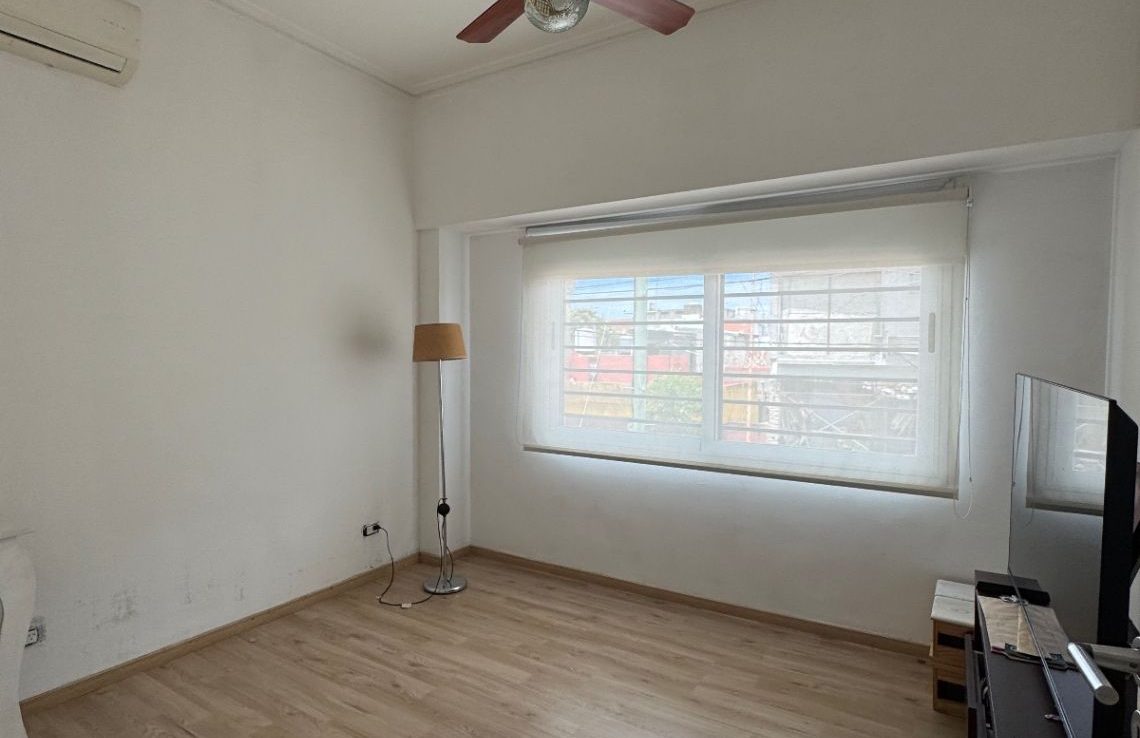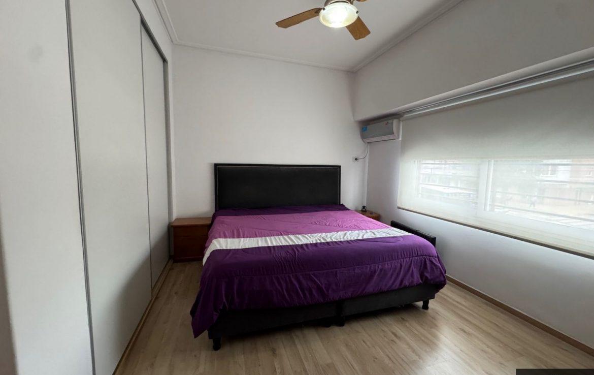 Amplio ambiente con living comedor y cocina integrada, balcón al frente, dos habitaciones (una con placard) y baño completo con ducha.