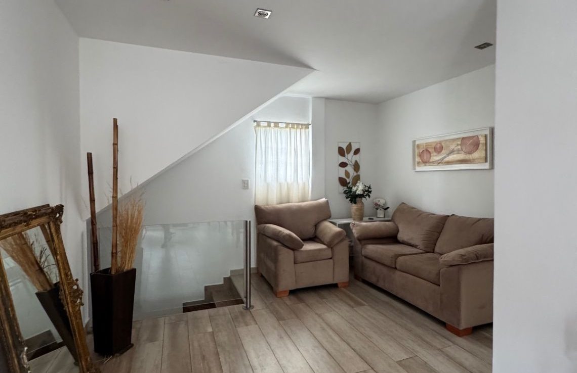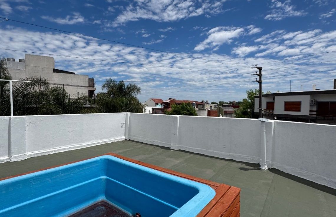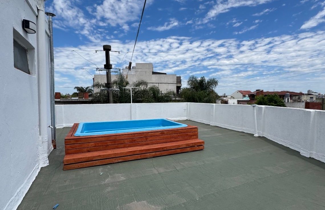 Acceso mediante una segunda escalera. Presenta un hall distribuidor, tercer dormitorio, baño adicional y una terraza de grandes dimensiones con pileta, perfecta para recreación o descanso.