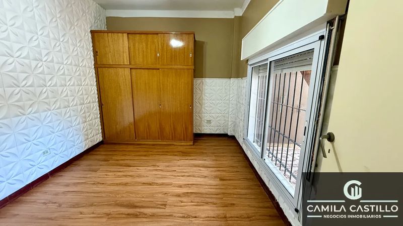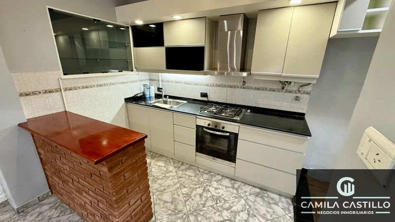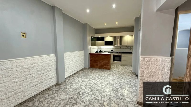 Planta baja: Living comedor en amplio espacio luminoso, cocina integrada con barra, dos dormitorios, baño completo.