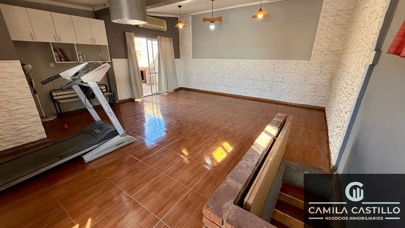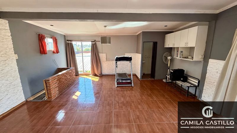 Planta alta: Gran sala de estar de múltiples usos, toillete, con salida a patio con parrilla.