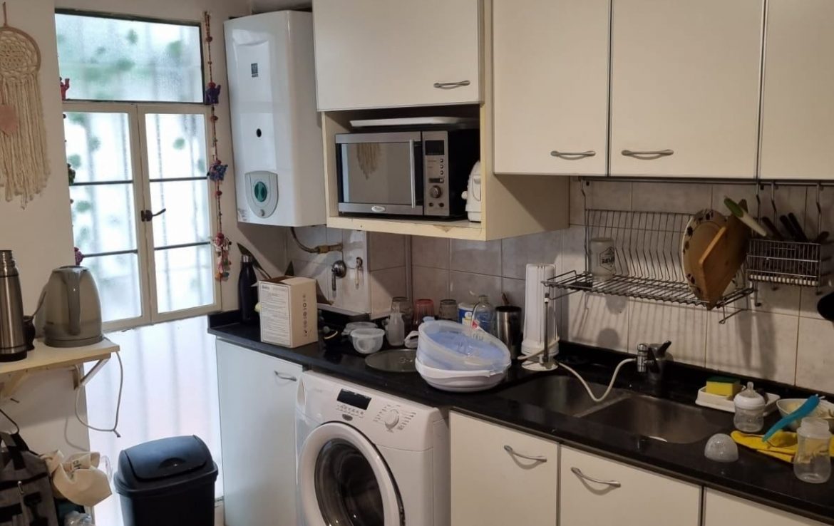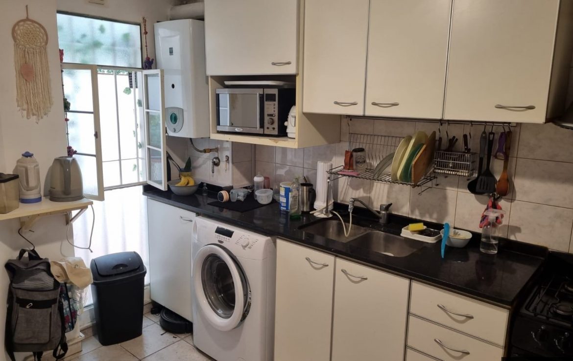 Amplia cocina, ventilada con mucho espacio de guardado, calefón eléctrico y cocina nuevos. Tiene una ventana al patio.