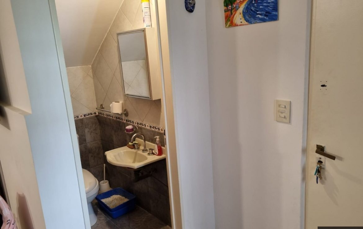 Se accede a la unidad por medio de una escalera y pasillo. Contrafrente, pocos vecinos, muy silencioso. Cochera cubierta y baulera. Bajas expensas