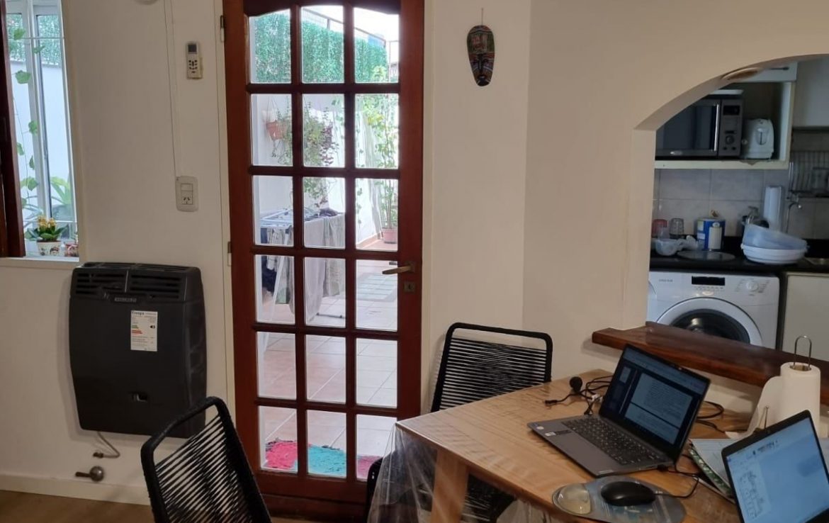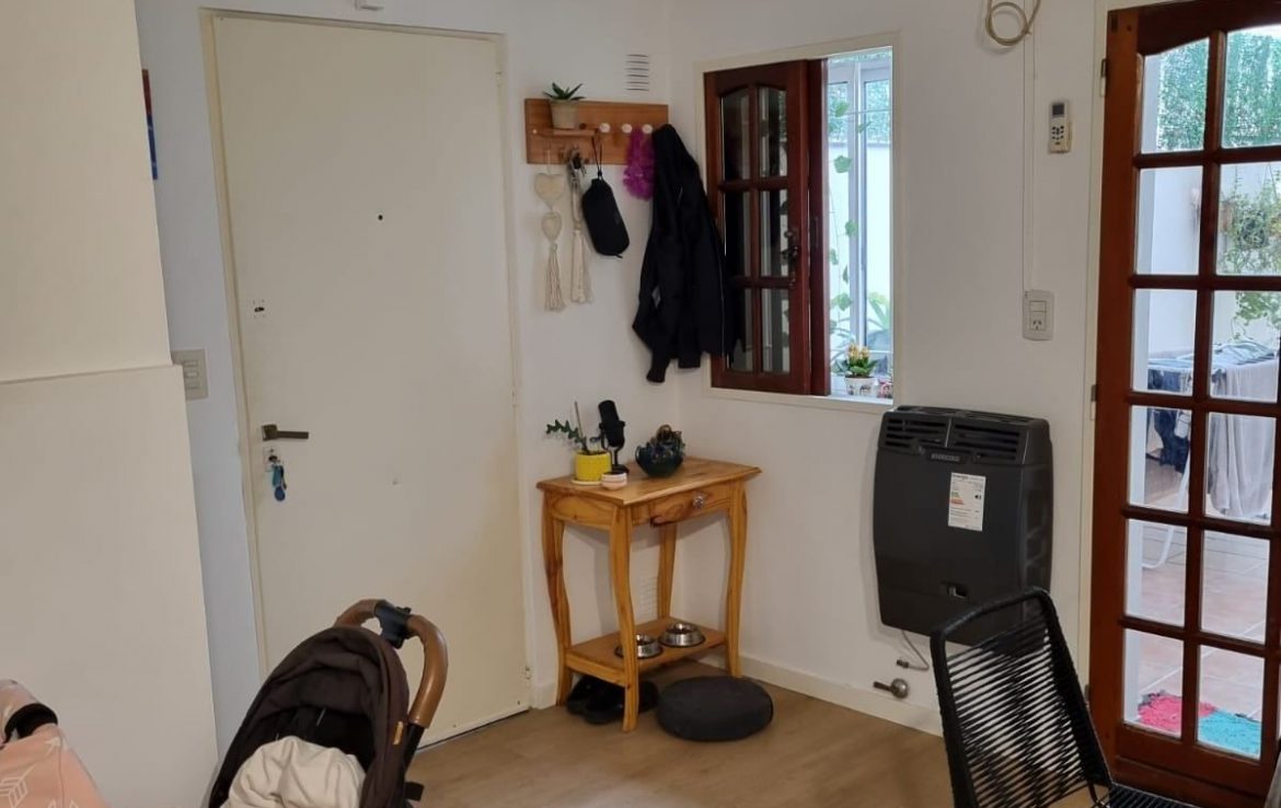 Gran living con barra desayunadora, acceso al patio, a la cocina, a un toilette y a una baulera. El living cuenta con una estufa tiro balanceado nueva y un aire acondicionado frio calor.